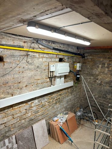 In case of circuit breakers tripping, emergency lights were installed in the basement to ensure there is always light available at the consumer unit.